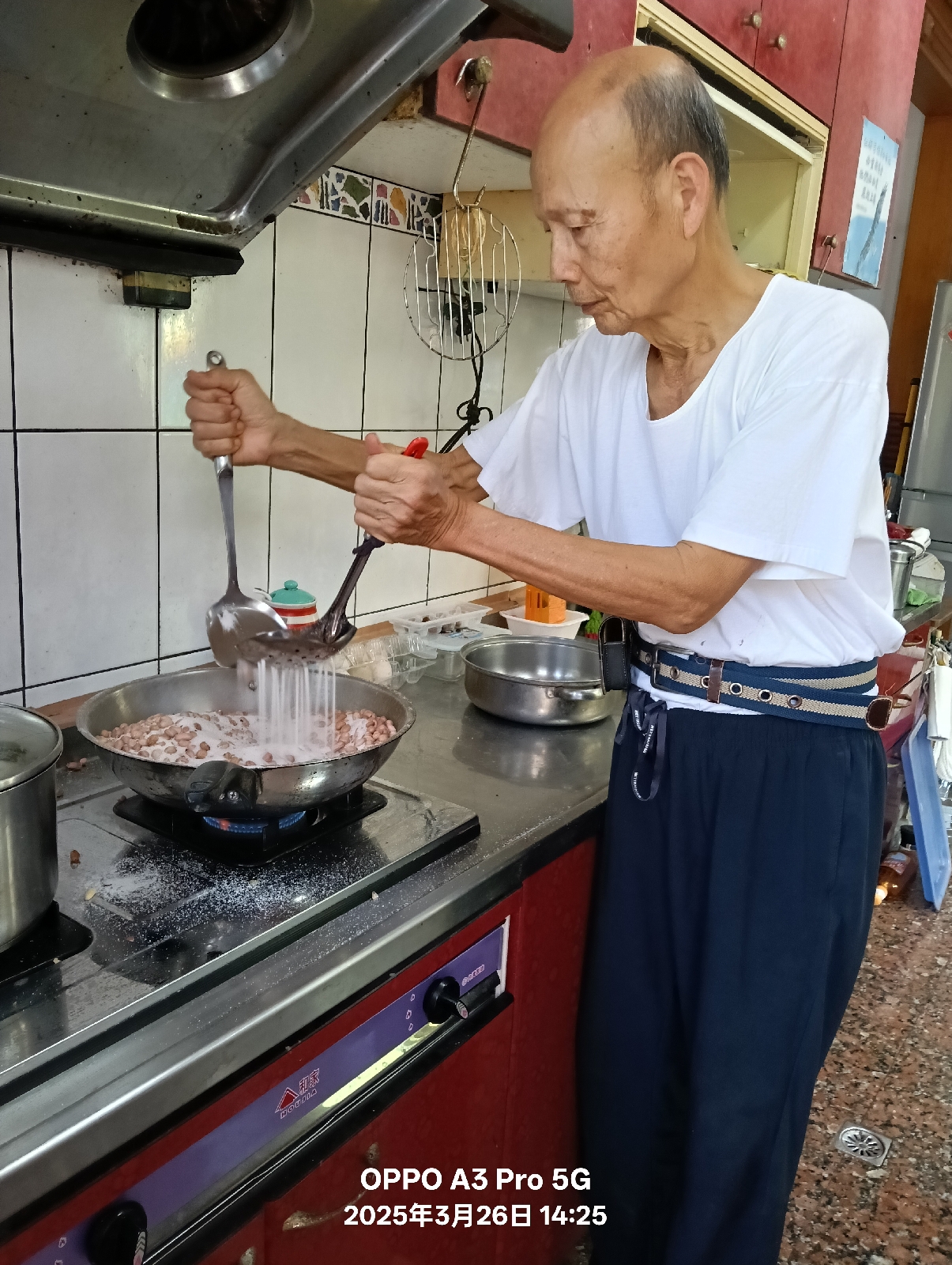 休假日下田揀石頭。紫秋葵種子泡水。(2025/03/26)